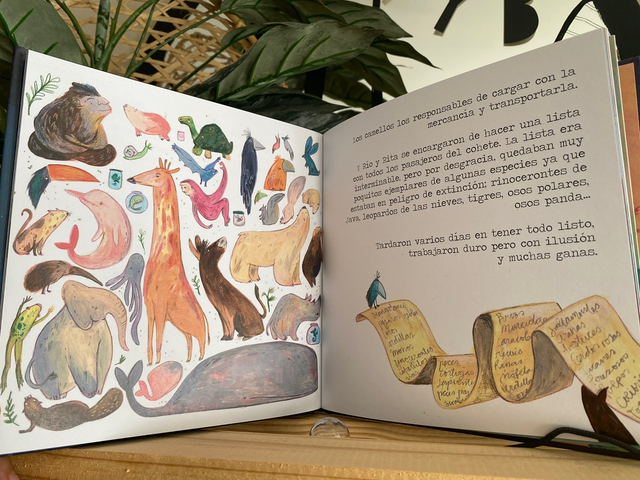 La historia de este libro narra una aventura protagonizada por personajes del reino animal, los cuales, por los daños del ser Humano en la Tierra, se ven obligados a construir una nave que les lleve a un nuevo planeta en el que se encontrarán con otros personajes.